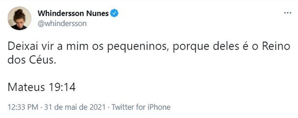 No início da tarde desta segunda, o comediante publicou um versículo bíblico em seu perfil no Twitter: